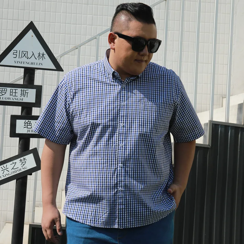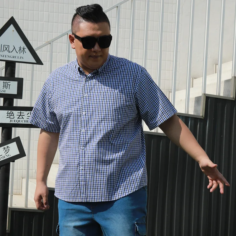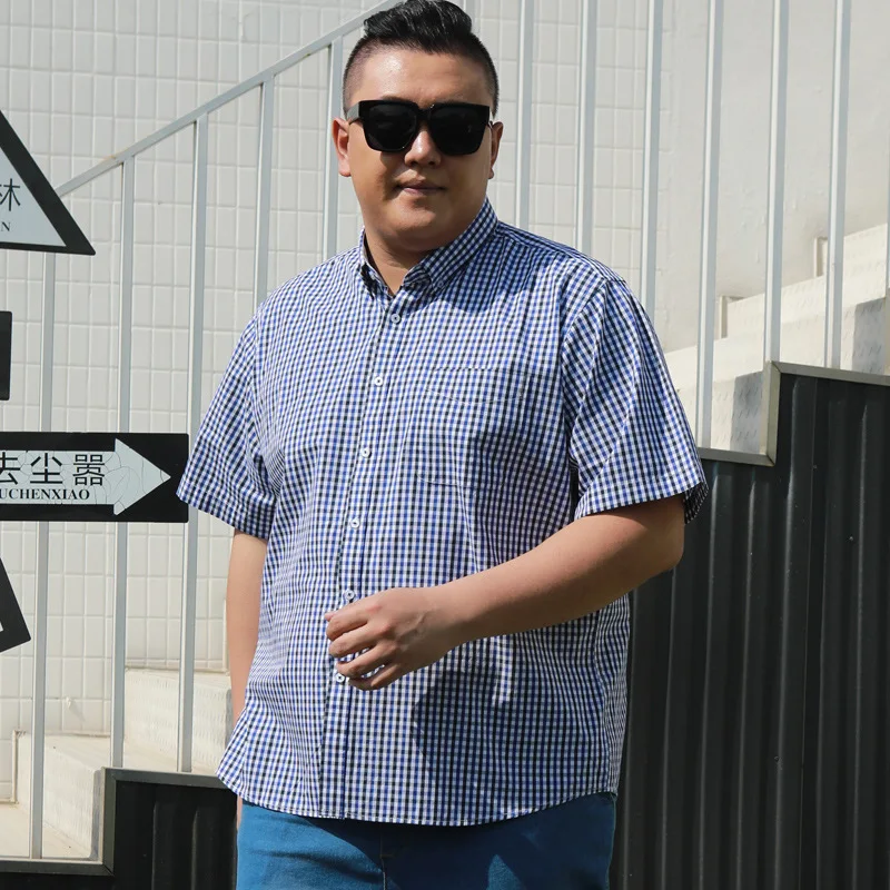 Summer Cotton Plaid Slim Plus Size Short Sleeve Dress Shirts Men's Loose Breathable ODM